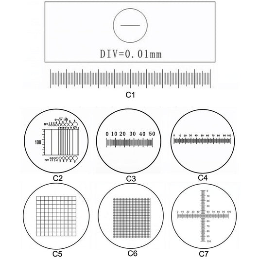 Microscope Stage Calibration Slide, Eyepiece Micrometer, Microscope Eyepiece Graticules, Ocular Micrometer, Cross Line Reticle (Set of 7)